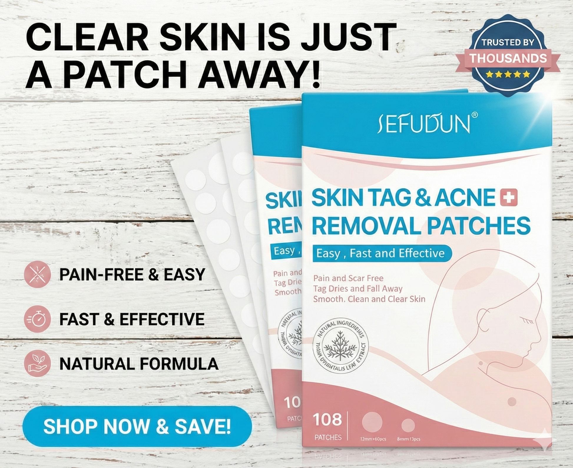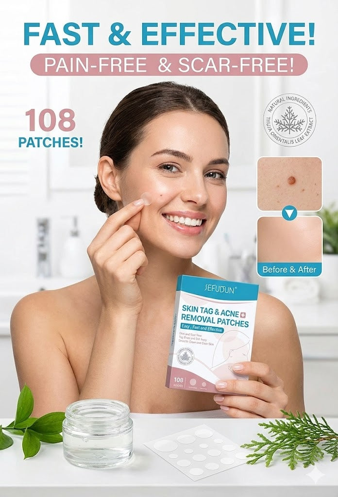 Say goodbye to skin tags and acne with our powerful, pain-free patches. Achieve clearer, smoother skin in days—no scars, no hassle. Simply apply and see the results for yourself!